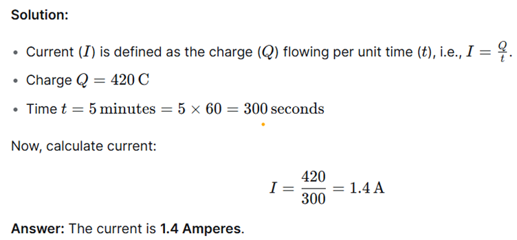 C. If a charge of 420 C flows through a conducting wire in 5 minutes, what is the value of the current?