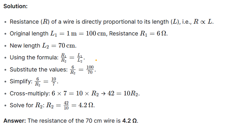 A. The resistance of a 1m long nichrome wire is 6 Ω. If we reduce the length of the wire to 70 cm, what will its resistance be?