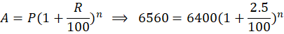 11. In how many years will a sum of ₹6400 compounded semi-annually at 5% p.a. amount to ₹6560?